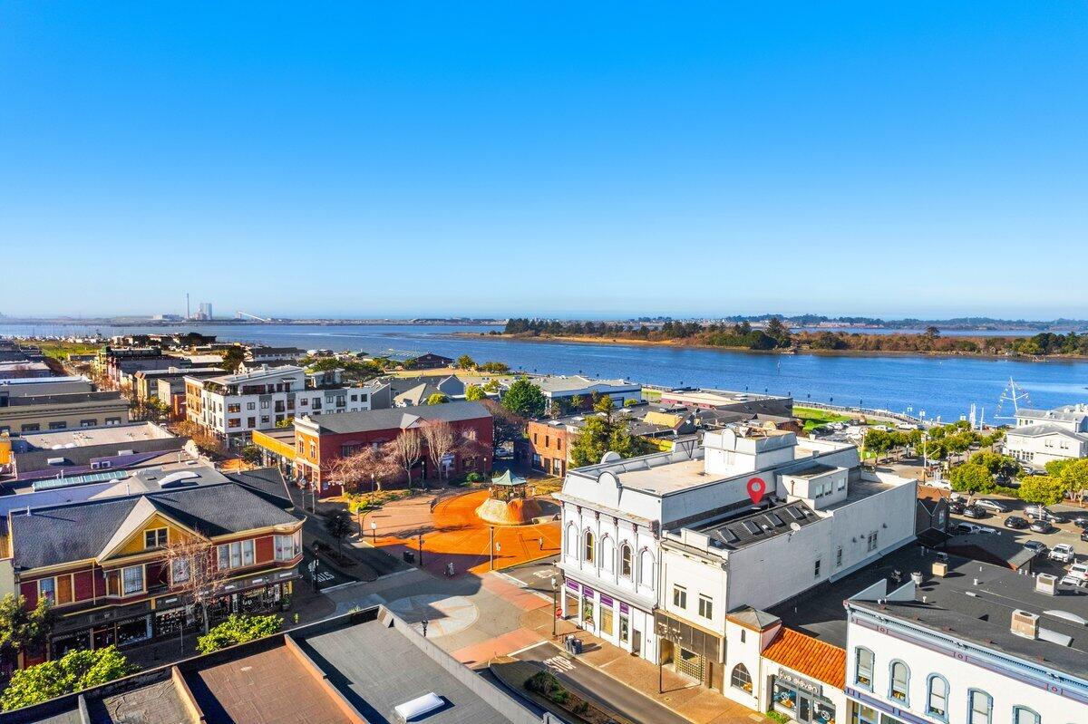 The Pearl Building with Luxury Apartment. Welcome to The Pearl, a stunning property rich in history and architectural significance. Originally built in 1872 as the Crystal Palace salon, this iconic building underwent a transformative Art Deco renovation in the 1950's. In 2004, The Pearl was completely restored, blending the best of old-world charm with modern luxury. The front 2,200 sqft of the building has been meticulously restored, including a new foundation and earthquake retrofit, with every detail upgraded to meet current commercial standards. New framing, plumbing, electrical, and a 2-hour fire-rated structure ensure both safety and longevity. The interior features poured concrete floors, both upstairs and down, with radiant heat. The rear 2,200 sqft of the building, also constructed in 2004, offers three stories of modern luxury, crowned by a penthouse and expansive roof deck that provides breathtaking views of the marina, redwoods, and Pacific Ocean. The location is unbeatable, nestled in the heart of Historic Old Town, just one building off the gazebo and only a block from the waterfront. The first floor showcases a sleek, modern design with custom finishes throughout, while the second floor is a spacious 2,200 sqft home, featuring 16-foot ceilings, glass railings, and exotic granite countertops. The primary bedroom boasts stunning bay views, making it the perfect sanctuary to enjoy the sights and sounds of this extraordinary location. The Pearl combines the grandeur of the past with the conveniences of modern living, offering a one-of-a-kind opportunity to own a piece of history in the most desirable part of town. Short Term Vacation Rental Permit completed and approved!