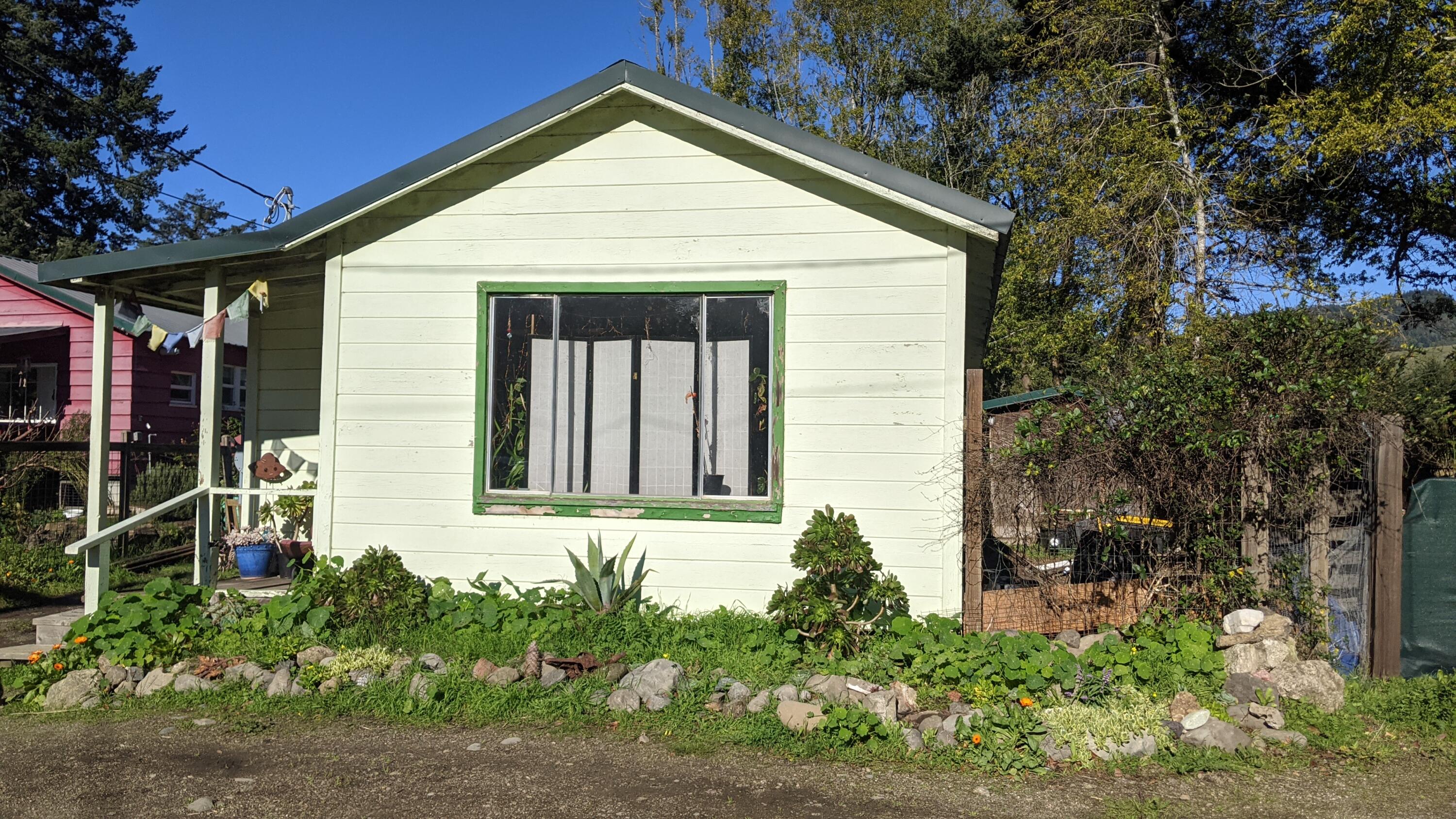 River cottage for sale within walking distance to the Mattole River. The house needs work, but has a newer metal roof, kerosene heat, on-demand water heater, a generator transfer switch for winter outages, Frontier high speed internet, a sunny yard and greenhouse for gardening , and two outbuildings. Great neighbors on a small lane in the countryside, here's your chance to live on The Lost Coast!