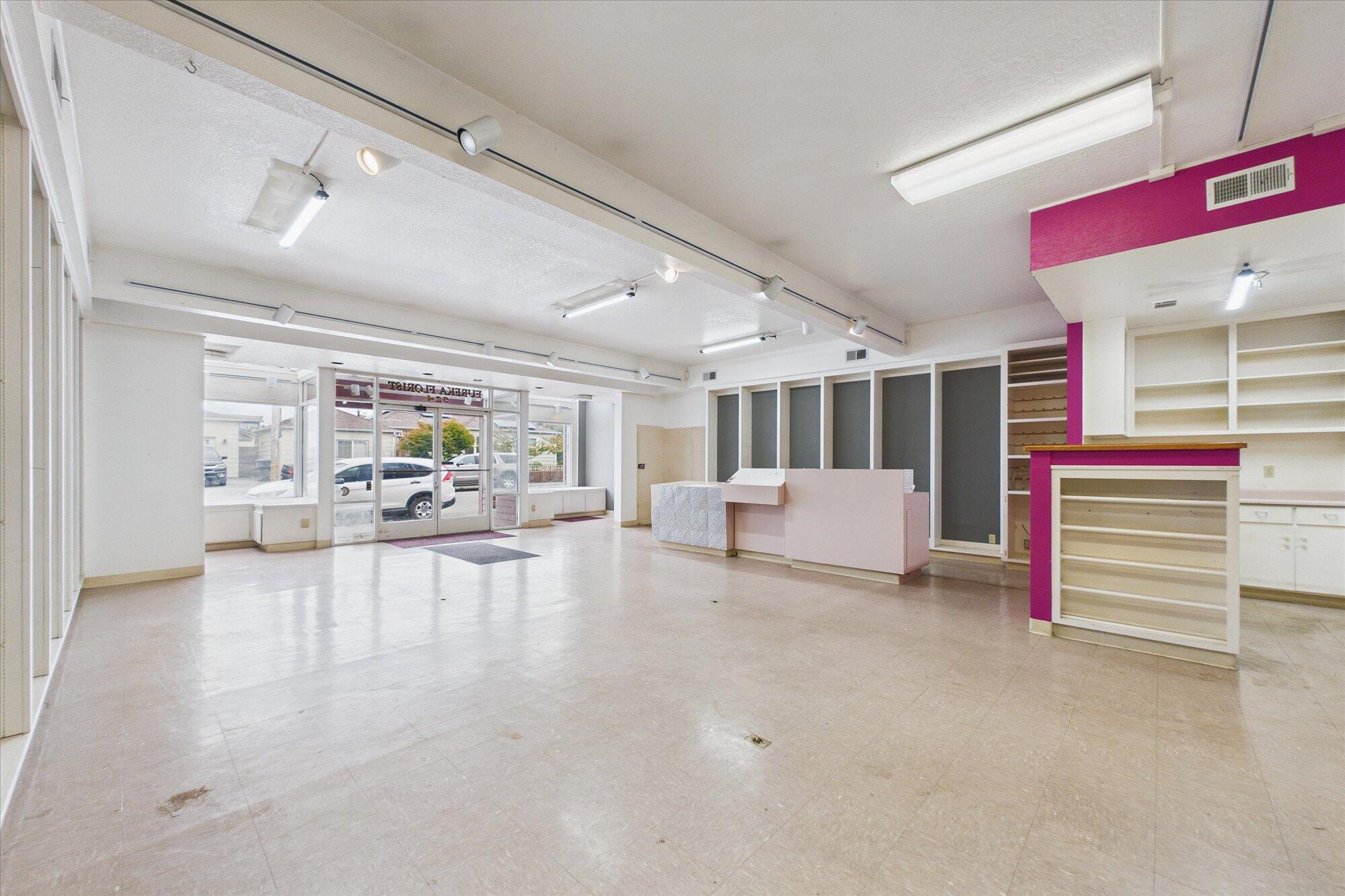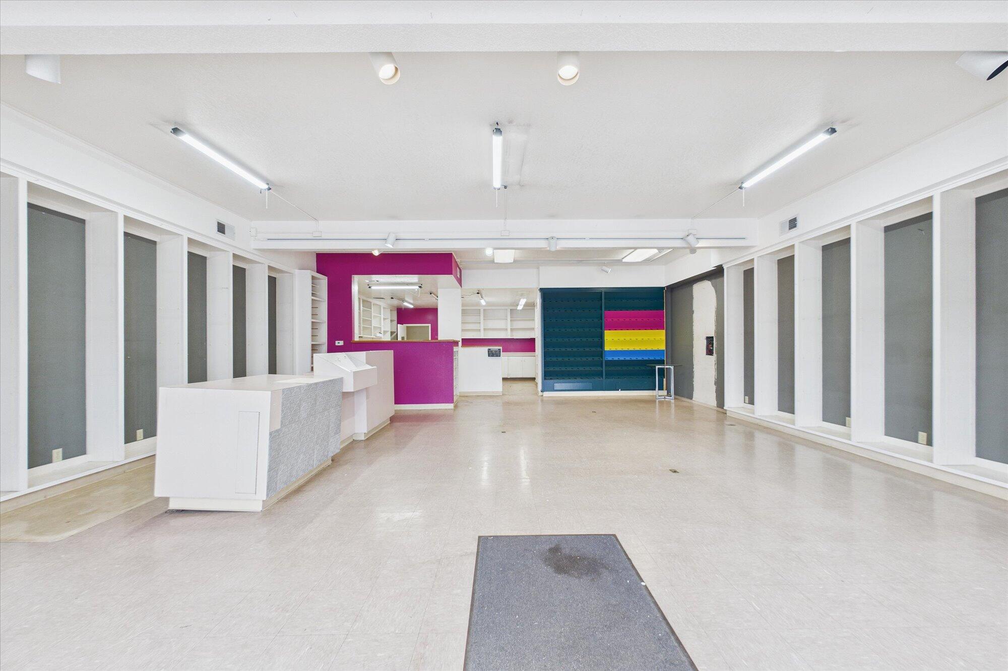 Prime Commercial Space in Henderson Center - 3,790 Sq Ft This versatile property offers 3,790 square feet of functional space, perfect for retail, showroom, or professional use. Features include an attached garage with ample storage and alley access, a spacious showroom, and a prep area equipped with a sink. The property boasts a walk-in fridge, a large island for prep or display, and stunning floor-to-ceiling windows that provide high traffic visibility. Additional amenities include a dumb waiter, new roof (1 year old), a brand new heater, skylights, and a ladder leading to the roof for easy access. Upstairs features an open space layout ideal for storage or flexible use. Located in the friendly Henderson Center, this property combines convenience, visibility, and modern updates —