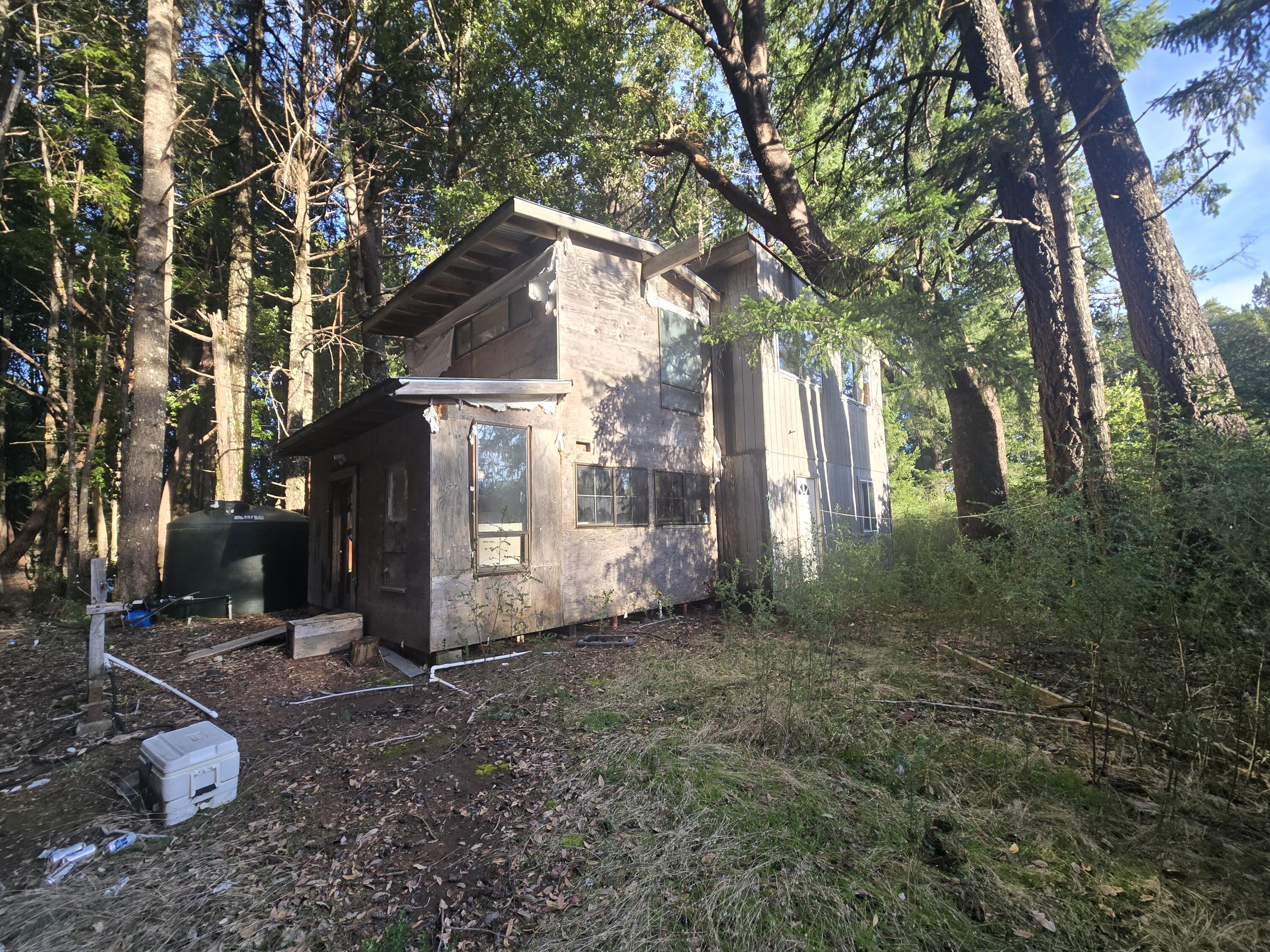 Rare Humboldt County opportunity 40 Aces about 30 minutes from town with abundant usable flat land with possible timber value. Main house is an off grid 2 bed 1 bath and offers valley views but needs work. Water tight with metal roof. Two large outbuildings provide excellent storage or workshop space. Reliable spring water with multiple tanks included. Ideal for those seeking land, water, and potential in a scenic rural setting. This property has good cell phone service!