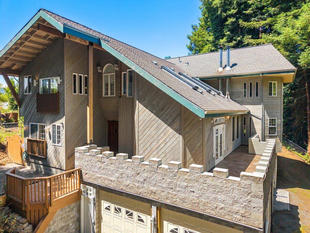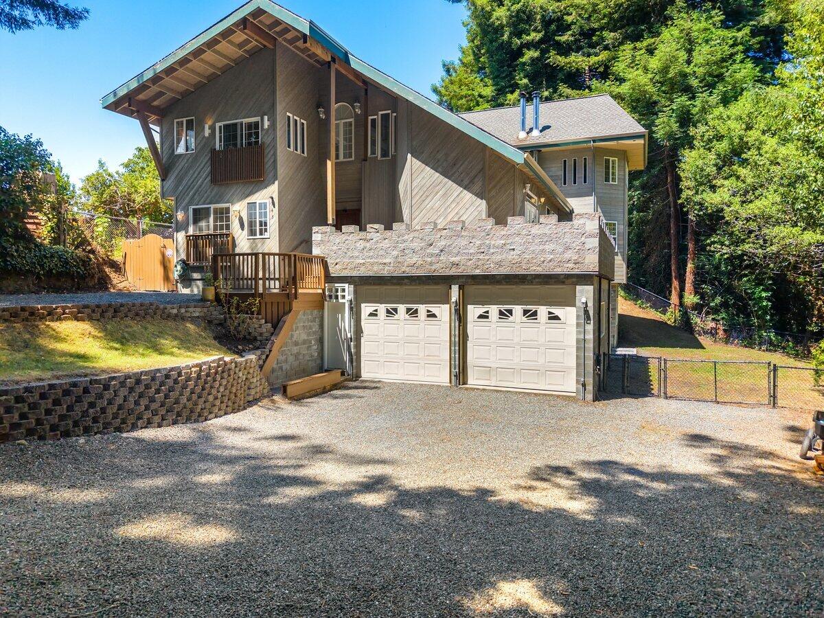 Stunning custom home tucked away on private redwood grove in the heart of sunny Blue Lake!! Exquisite finishes including Cherry cabinetry, Granite countertops & tile flooring with radiant heat. Large dual sided wood burning stove from living to family & dining areas, this open floorplan is designed for entertaining. Tri-level home in which each bedroom features its own en-suite bathroom. Zoned heating throughout. First level apartment space with its own bedroom bath & entry, plumbed for kitchenette & separate metering if desired. Glass Sunroom off kitchen leading to large deck and backyard area. Powers Creek runs through lower portion of property giving a beautiful outdoor landscape and privacy for outdoor enjoyment. Ideal for work at home or multigenerational living, Come see it today