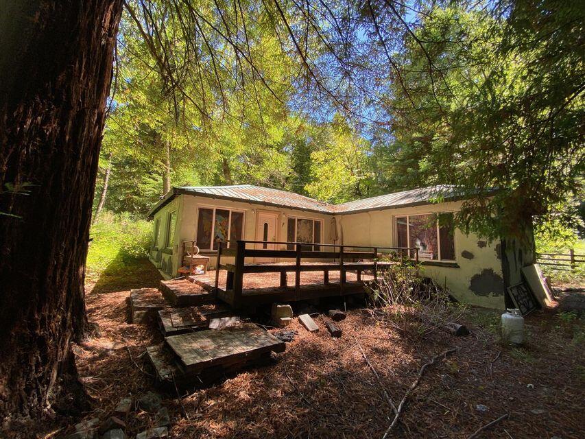 Nestled among Redwood trees and sunshine, this home offers a head start—just waiting for your finishing touch! Features include a large stainless steel farm sink, jacuzzi tub, split air/heat system, deck, and a foundation for a future garage. Located on a spacious lot with community water and sewer. Bring your vision to complete this peaceful retreat. Buyer to verify all information. Sold as is.