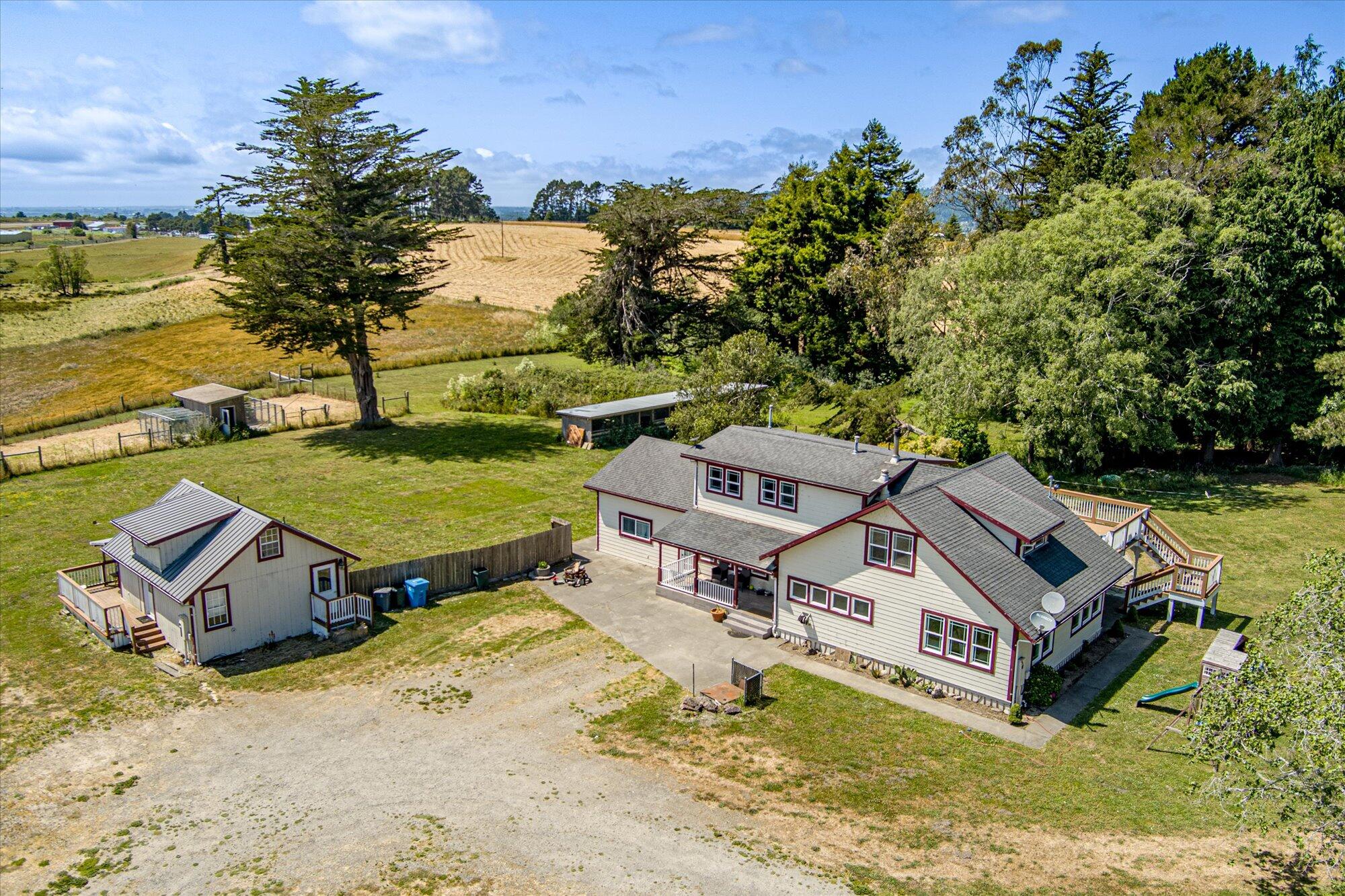 **NEWLY PRICED UNDER RECENT APPRAISAL VALUE!!!** Welcome to your dream country retreat just minutes from town! This fully remodeled 4 bed, 2 bath 2,700 sq ft Farmhouse sits on 11 acres of panoramic beauty. Enjoy a chef's kitchen with quartz countertops. New windows, bathrooms, and vinyl plank flooring throughout. Roof repairs in 2019. The spacious primary suite offers a large walk-in closet, private deck, and serene views. Entertain in the oversized bonus room or relax on the covered front porch. Property features include a 722 sq ft income-producing ADU, 65x48 barn, 15 horse paddocks, chicken coop, pig pens, corrals, play structure, pond, and a large shed. Fully fenced with an automatic gate, zoned ag/residential, and located near the hospital and golf course--this is country living close to town at its finest! Large, well equipped laundry room (washer and dryer included in sale if buyers would like). Large pantry in the kitchen, with professional range, sun-soaked dining room, office space with French doors out to the covered backyard patio, and lots of windows complete this light filled home. Farm land ready for new owners to make it their own! Information from previous listing. Buyer to verify all property characteristics and material facts.