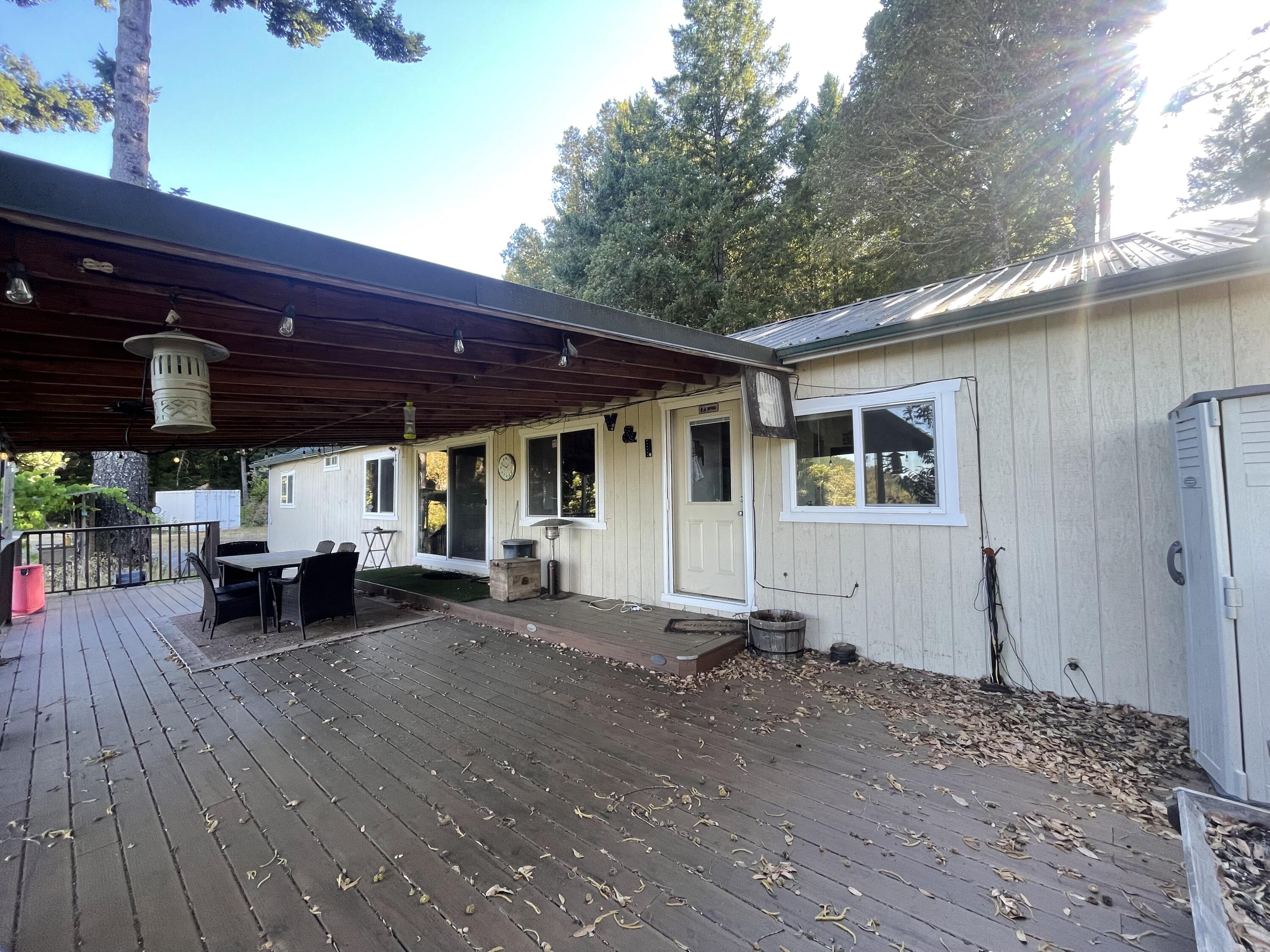 The dream is still alive. Take a little drive on over to Wilder Ridge where the days are quiet and the starry nights dazzle. It's a lifestyle to live on your own land.... peace, privacy, fresh air.... a place where you can find a closer connection to nature. Open concept kitchen/living/dining, 3 bed, 2.5 baths (2 primary), public power and generator backup. Oh the deck with the endless views... this might just be your favorite place to contemplate life's big questions. The shop is just steps away. Great flat for a huge garden or maybe a place to store your equipment. All this just off the main road, minutes to downtown Honeydew, Mattole River and the Lost Coast. Saunter down your paved driveway through the trees and into your own private world. Here's your opportunity to make your home.