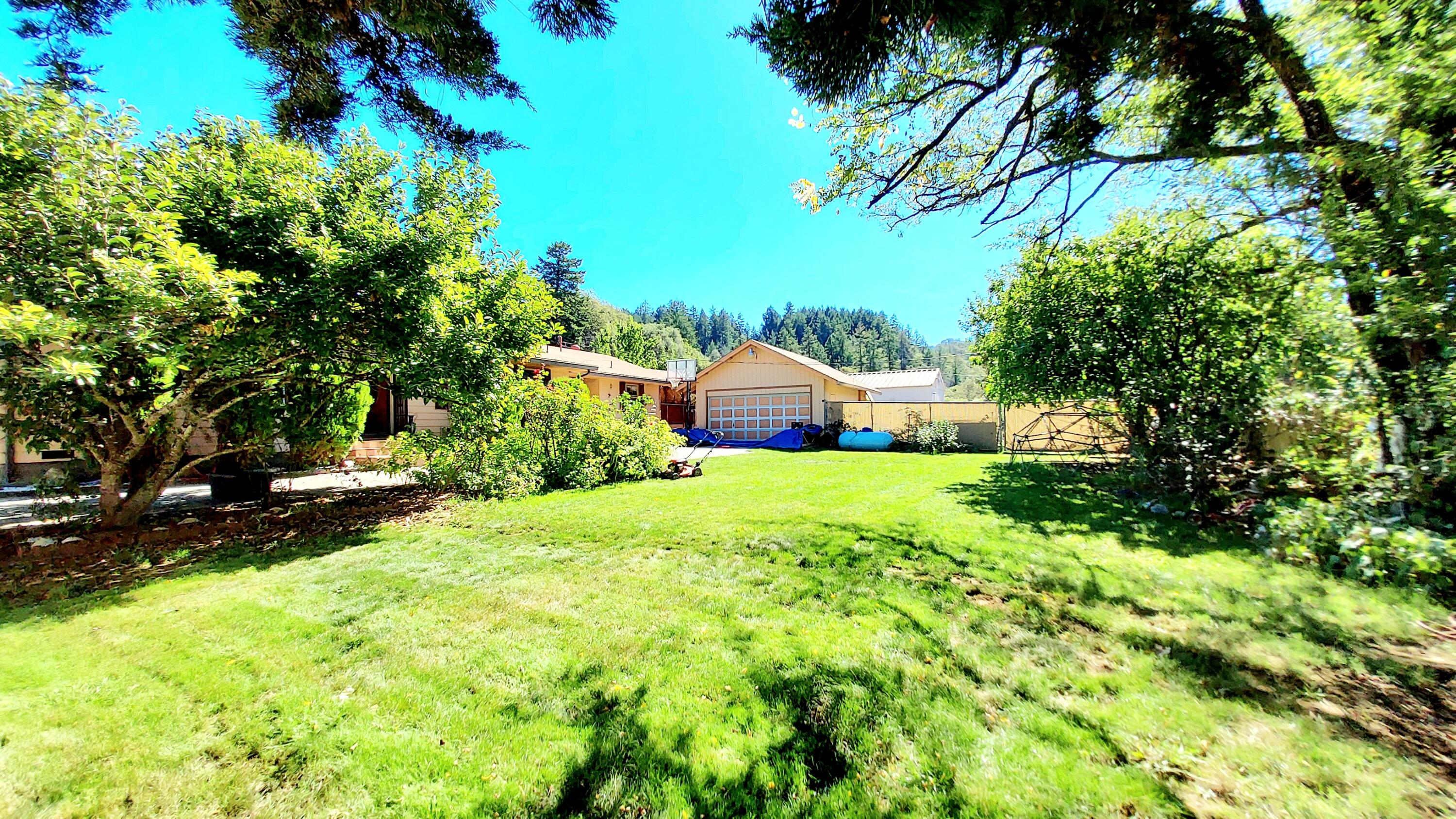 Extraordinary opportunity to own a turn key, fully furnished Alderpoint residence. This family home has been well built and thoroughly maintained. Great neighbors and beautiful countryside surround a once in a lifetime deal. Gated for privacy, you will have a wonderful yard with green grass, pear, plum, fig, cherry and passionflower fruit trees. Established calla lilies and a grand Magnolia tree really makes this house a beautiful home. Oak floors hide under the carpet, waiting to be finished and gleaming; sheet rock sits under the wood paneling for an easy update. AC is strong, cooling the home well and a Rinnai Blue Star Heater keeps you cozy in the winter. All furnishings come with the home, including the valuable Poster Bed. Appliances are in strong working condition, and this 3 bedroom, 1 bathroom home boasts an extra studio with it's own entrance. Use as an income rental or a creative space- this studio has laminate flooring and a large, attached laundry room. From the studio, you can enjoy your beautiful Trex deck for relaxed outdoor living. A ceiling fan and comfortable seating make this deck a great entertaining space and retreat to enjoy the fresh air. An awesome 2 car garage and segregated grow space for fruits and veggies gives you everything you need. Fully fenced, fully furnished and great internet leave you with nothing to want in this home. A covered patio, studio and grassy yard offers the opportunity to soak in the quiet, countryside lifestyle.