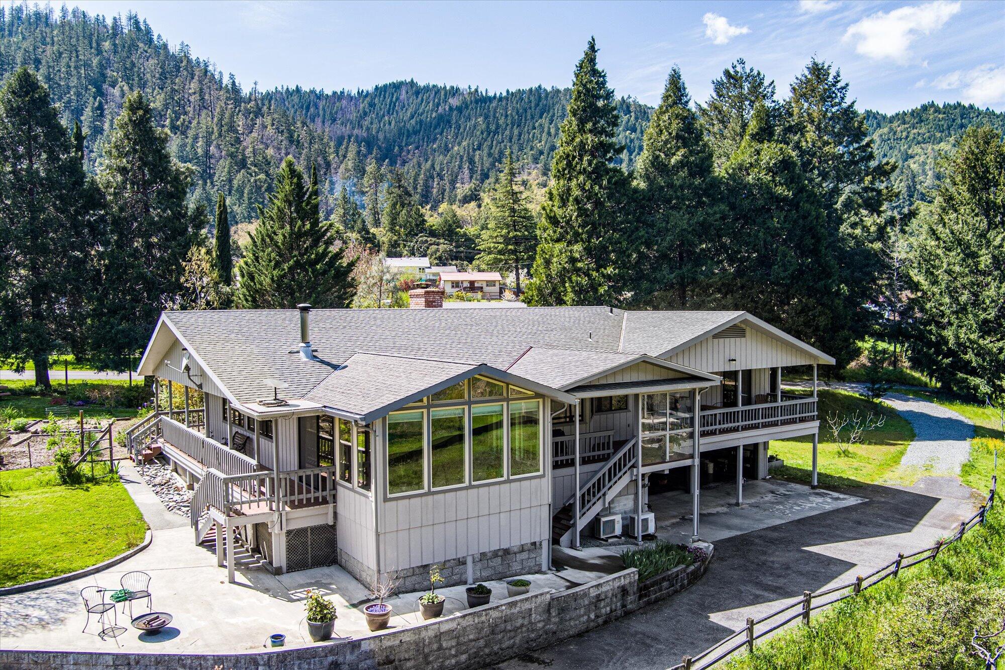 Accepted contingent offer with seller right to cancel with 17 days notice. Relaxing By The River- you may never want to leave! Privacy plus views everywhere. Three lots, including a half-acre buildable lot makes for lots of options. Two easy access points to the wild and scenic Trinity River, plus a half-acre pond, and large meadow that delights birds and wildlife. Live the good life in the beautifully maintained open floor plan home perched above the pond and the river. Tile counters in kitchen and gorgeous ancient slab redwood on island/breakfast bar plus ample storage. 1000+ sqft living room features a brick hearth with fireplace, plus a woodstove by the sunroom for those cozy evenings. Enjoy your coffee with a view on the wrap around deck or in the sunroom/dining room. Property is private and views abound from every window, both river and mountain views, and the incredible half acre pond, meadows, and garden areas. A few years ago, the Sellers purchased the lot next door, which is approx 1/2 acre and fully buildable. This opens up many possibilities including family compound, multi-generational living, and even vacation rental. Fireplace has a gas line, but Sellers do not use it. They prefer wood. Generator-The 5kW generator can be manually plugged into the PG&E 'smartmeter'. So no, not automatic. It should also be kept in mind that the 5kW generator can run anything in the house, but not simultaneously. Fire hardening recommendations by Cal-Fire have been completed by Sellers. That includes eliminating Scotch Broom, eliminating blackberry vines on the flat surfaces, and limbing trees when needed. Certificate from Cal-Fire in Documents. Sellers have planted an extensive garden of fruit trees including Apple, Apricot, Peach, Pear, Plum, Quince, Persimmon, Fig, as well as Olives and Grapes. There is a secondary water source, a spring, that is set up for irrigating the planted areas. Quote for Homeowner's Insurance is in Documents. Abundant wildlife in and around this property. Owners have seen Eagles, Osprey, Otters, Ducks, Beavers, Fox, Deer, Bear.