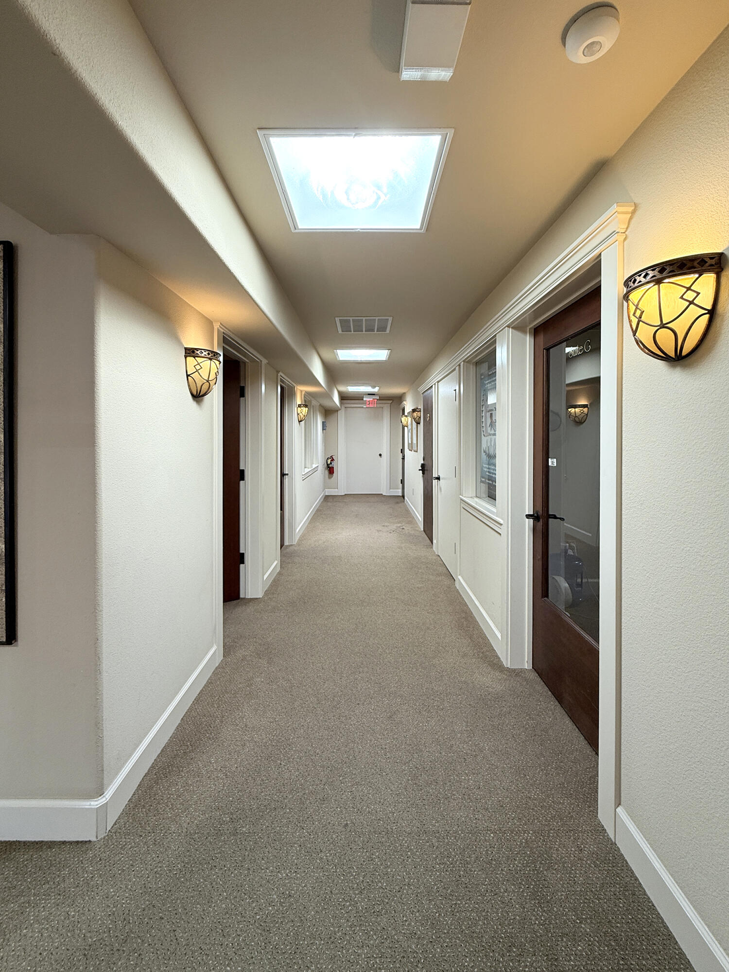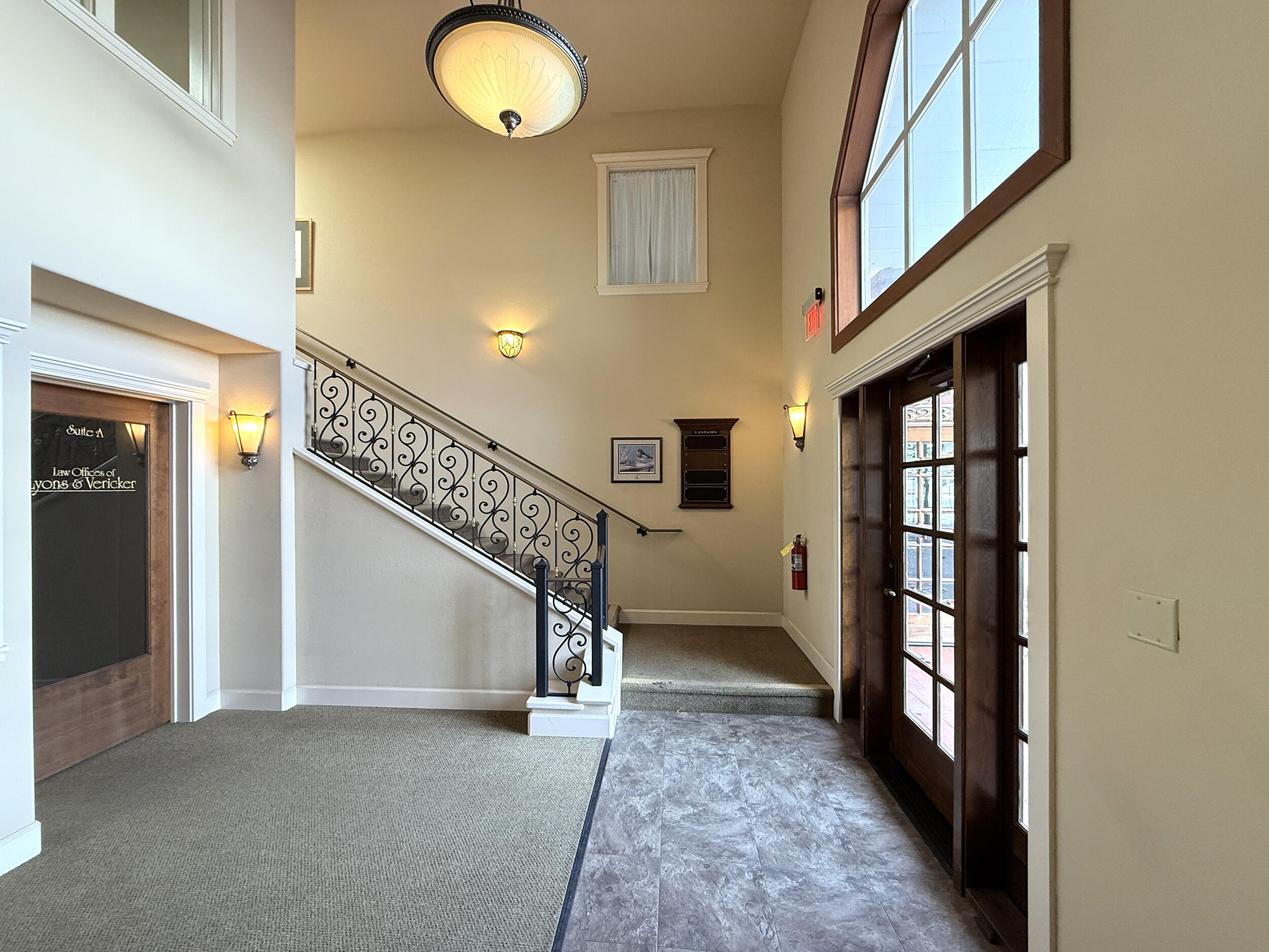 Second floor professional office suite available (Suite D). Beautiful office space with built-in bookcase for this 349 sf suite. Possibly large enough for 2-3 workers or a single professional looking for a quiet place to work. Shared restrooms with other upstairs tenants. No on-site parking but the 7th and H Street intersection is fairly 'light' with parked cars. Unlimited time parking is two blocks away.