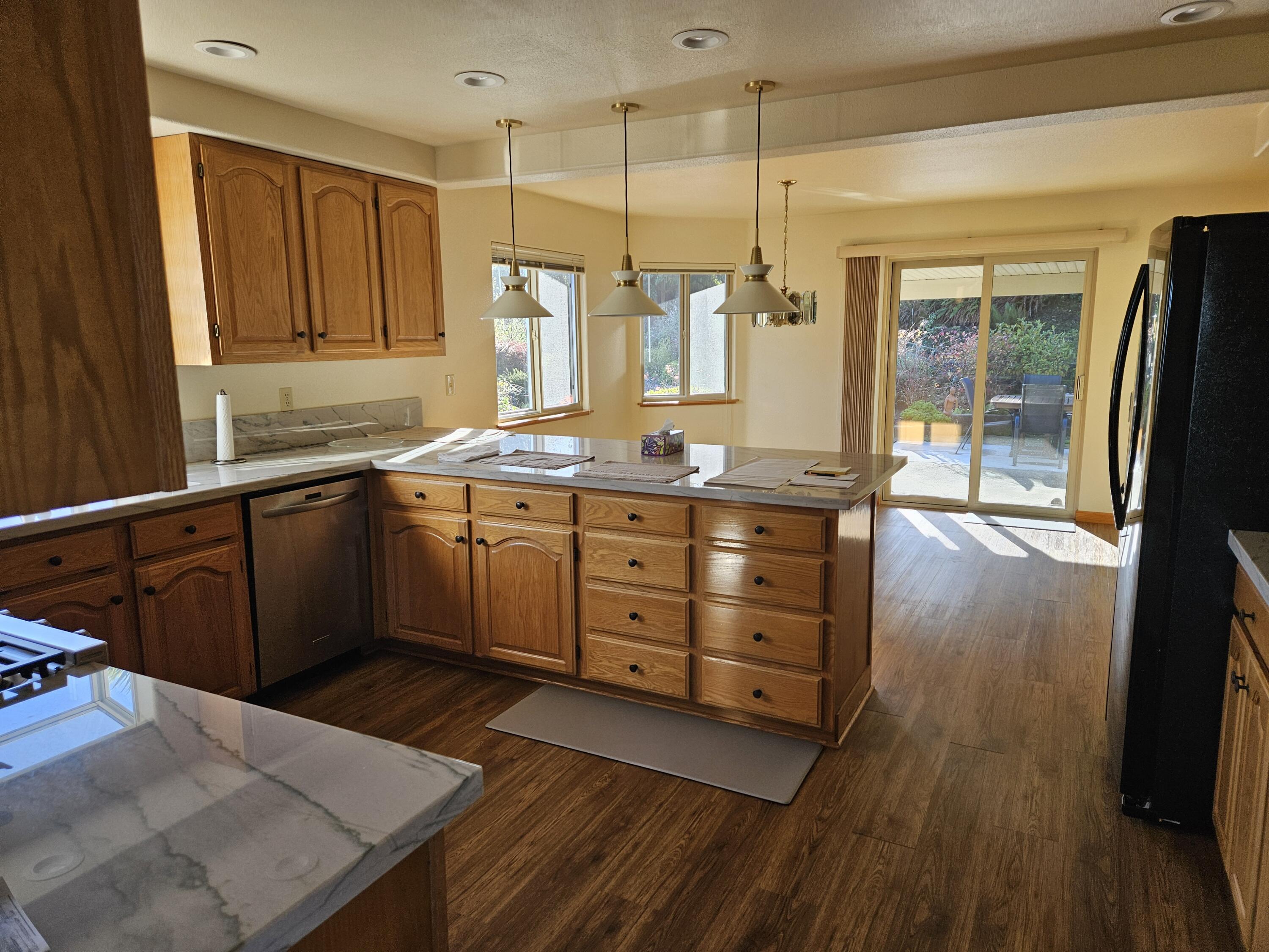 Well cared for home, Views of the opening of the bay and white water. Unit downstairs has a separate entrance and easy conversion to ADU. Roof is 2013, painted in 2021, lots of work has been completed, remodeled Kitchen, stone counter tops, master bath was completely remodeled, added a laundry area upstairs. Hot tub with enclosure, Generac generator full service, two hot water sources, sprinklers in the front, pet enclosure in the back. Private setting, only 6 houses on the cul-de-sac. Easy to show on short notice.