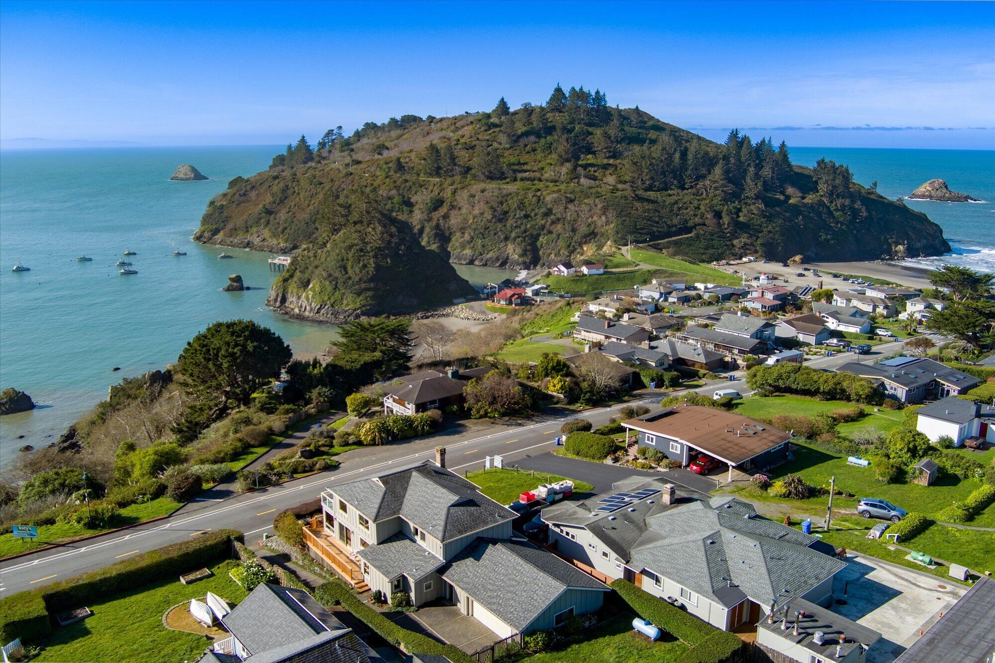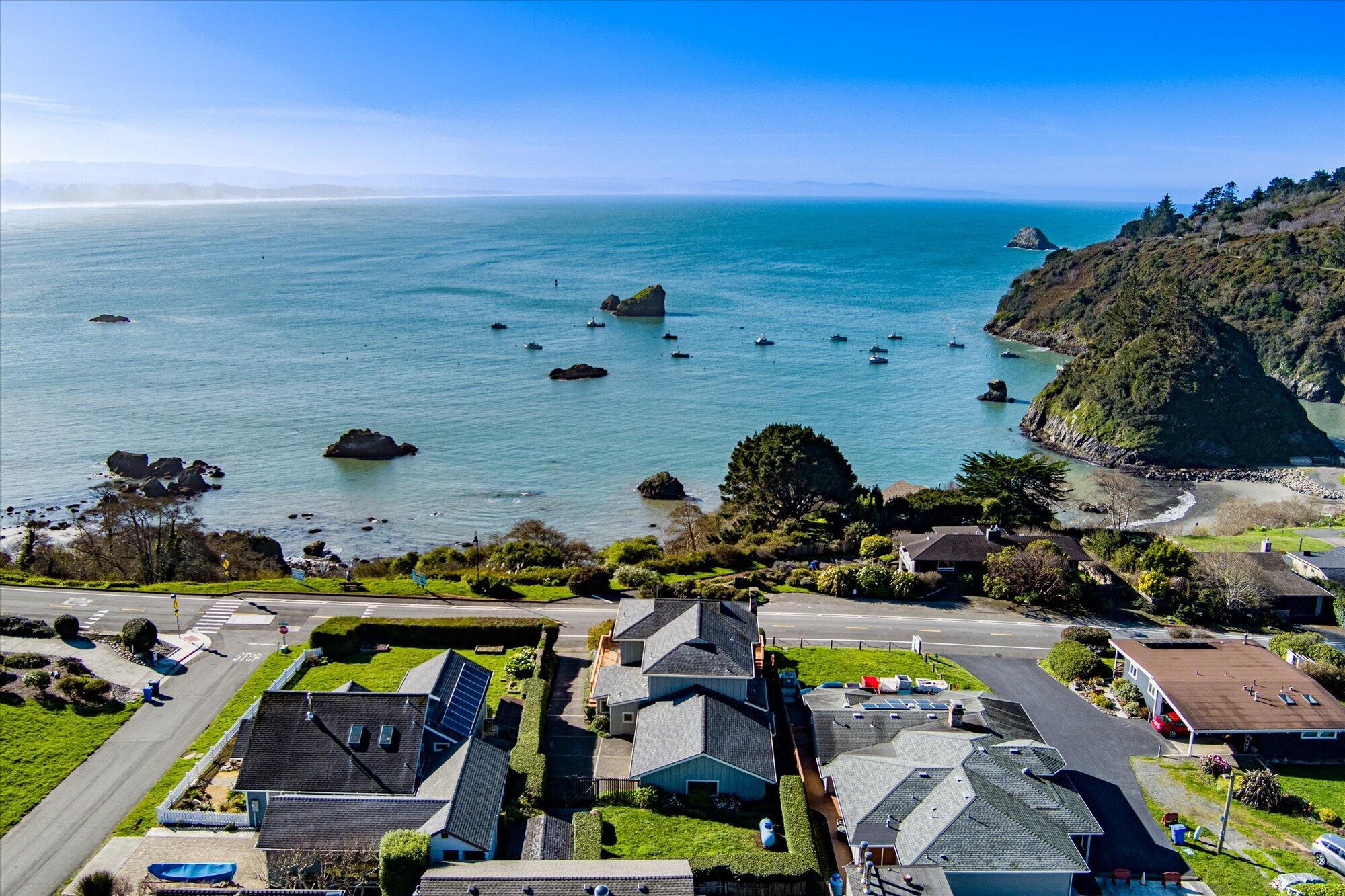 Gorgeous home in the village of Trinidad with breathtaking coastal views, including Trinidad Head, west to Trinidad State Beach and South overlooking Trinidad Bay and Pacific Ocean. Maybe once in a decade comes the opportunity to purchase a pristine, well-kept home with spectacular views, yet live in a delightful and walkable small town with restaurants, coffee shops, gift stores, and market. Great pride of ownership has kept this property clean and current. New redwood wrap-around deck sets the tone for a stunning house with huge view windows, wood floors, and that oh-so-special balcony deck! Kitchen features quartz counters, lots of storage, and a large and comfortable family room to sit and enjoy the views. Did I mention sunsets?? Walk to State Beach, Old Home Beach and College Cove. See List of Improvements in documents. Note that Roof is only 10 years old, and new septic system and leach field in 2016. City of Trinidad requires that the septic be inspected every three years and owners have kept up with that. Sellers have had most of pest work completed, some items on the Home Inspection. They have changed out the propane tank for a new tank, new company is Sequoia Gas. Some furniture belongs to Seller, some they will sell with the house, and some belongs to stager. Table at built-in nook in kitchen and chairs stays with house. Three failed windows, two in family room area facing view, and one in living room. Seller will credit Buyer the estimated cost of obtaining new glass from the manufacturer, Marvin Windows, and installation, approx $10,000. There is an 11 week lead time to get the new glass.