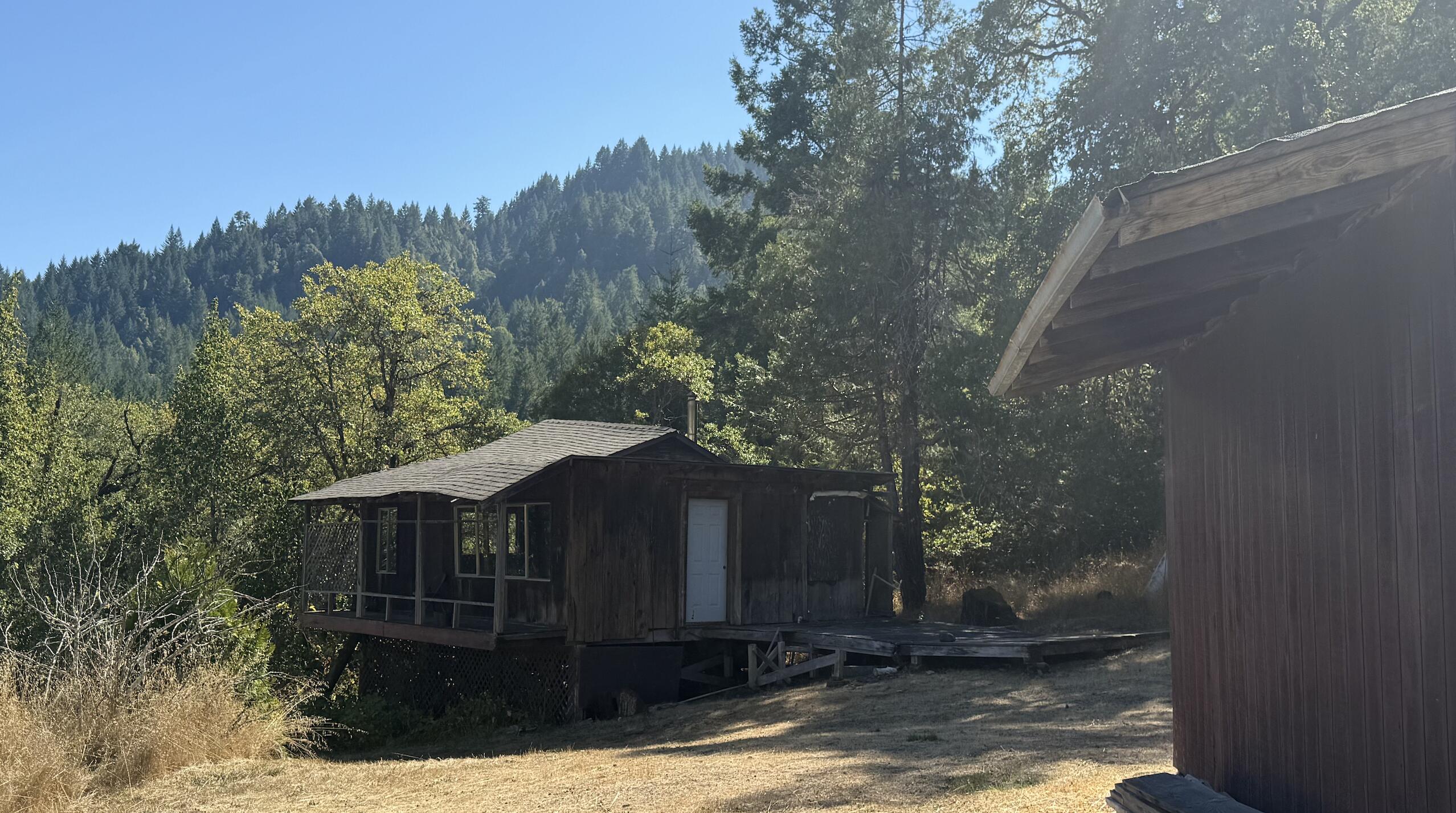 This beautiful and private 40-acre property offers peace, seclusion, and excellent cell service. Features include a 480 sq ft main cabin in need of TLC, a second rustic log cabin for storage or teardown, and a large 3-bay barn with an additional room. No need to stress about water with the abundant water sources: a year-round spring, a large beautiful year round pond, an additional seasonal spring box, and multiple storage tanks (including a 100,000-gal Australian tank and more). Diverse trees and open rolling hills, Cedar, Fir, Oak, Bay, Madrone—plus apple, cherry, pear and quince fruit trees. Established raised garden beds are ready for your gardening aspirations. Just 30 mins to town. Cash, land loan, or seller may carry with significant down.