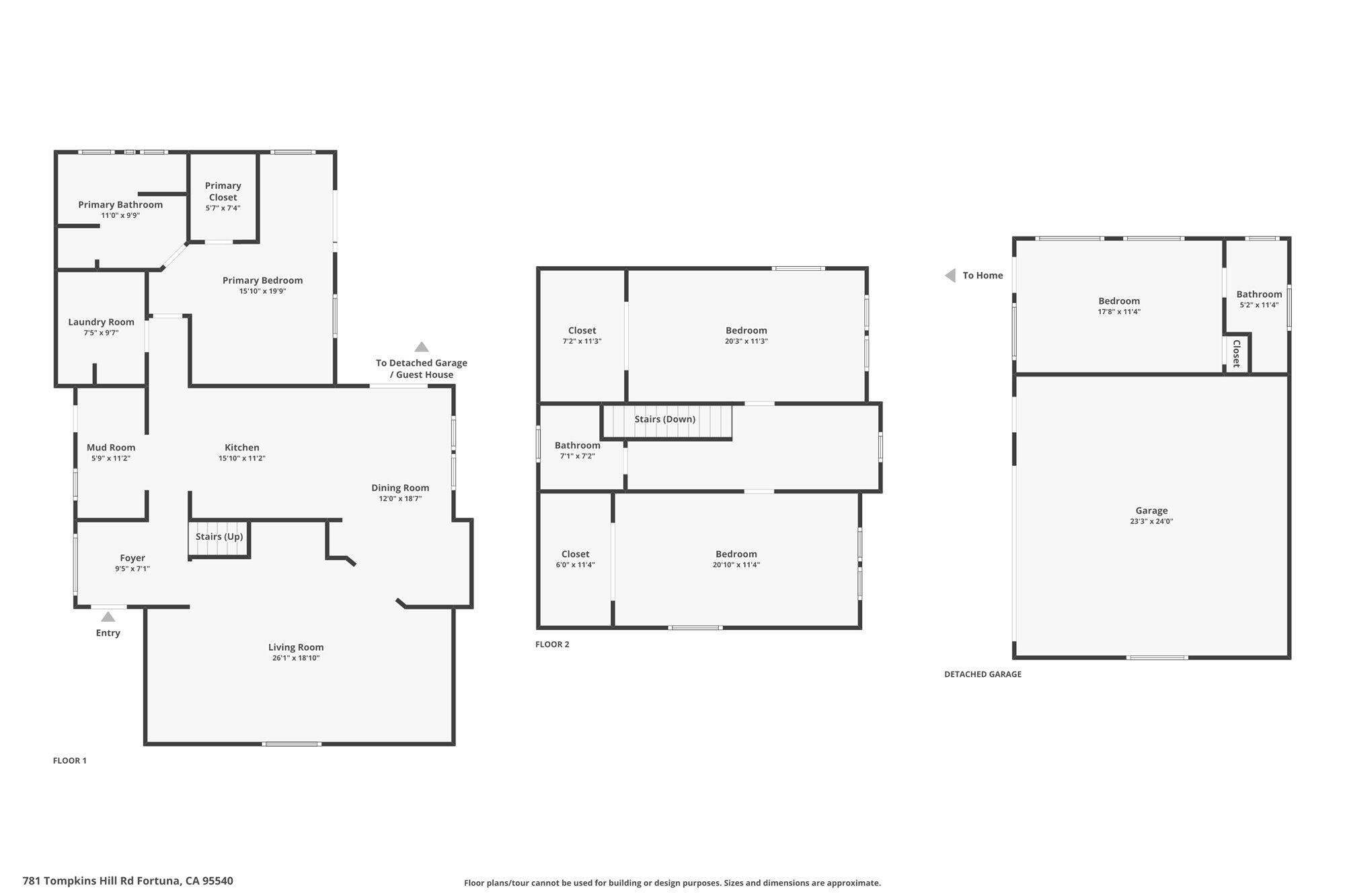 This 3-bedroom, 2-bath home sits on a 0.3-acre lot atop Tompkins Hill, offering breathtaking views of the Eel River Valley. Inside, you'll find elegant hardwood floors and an open-concept design, with the kitchen, living, and dining areas seamlessly integrated. The well-equipped kitchen is ideal for both casual and serious cooks. Desk/office space nook just off the kitchen. The primary suite features a private Trex deck and a luxurious bathroom with a soaking tub, separate shower, and walk-in closet. Two additional very spacious bedrooms with large closets are upstairs, along with another quiet office nook. A detached garage includes a 1-bedroom, 1-bath unit with a deck. The property also has solar & a whole-house