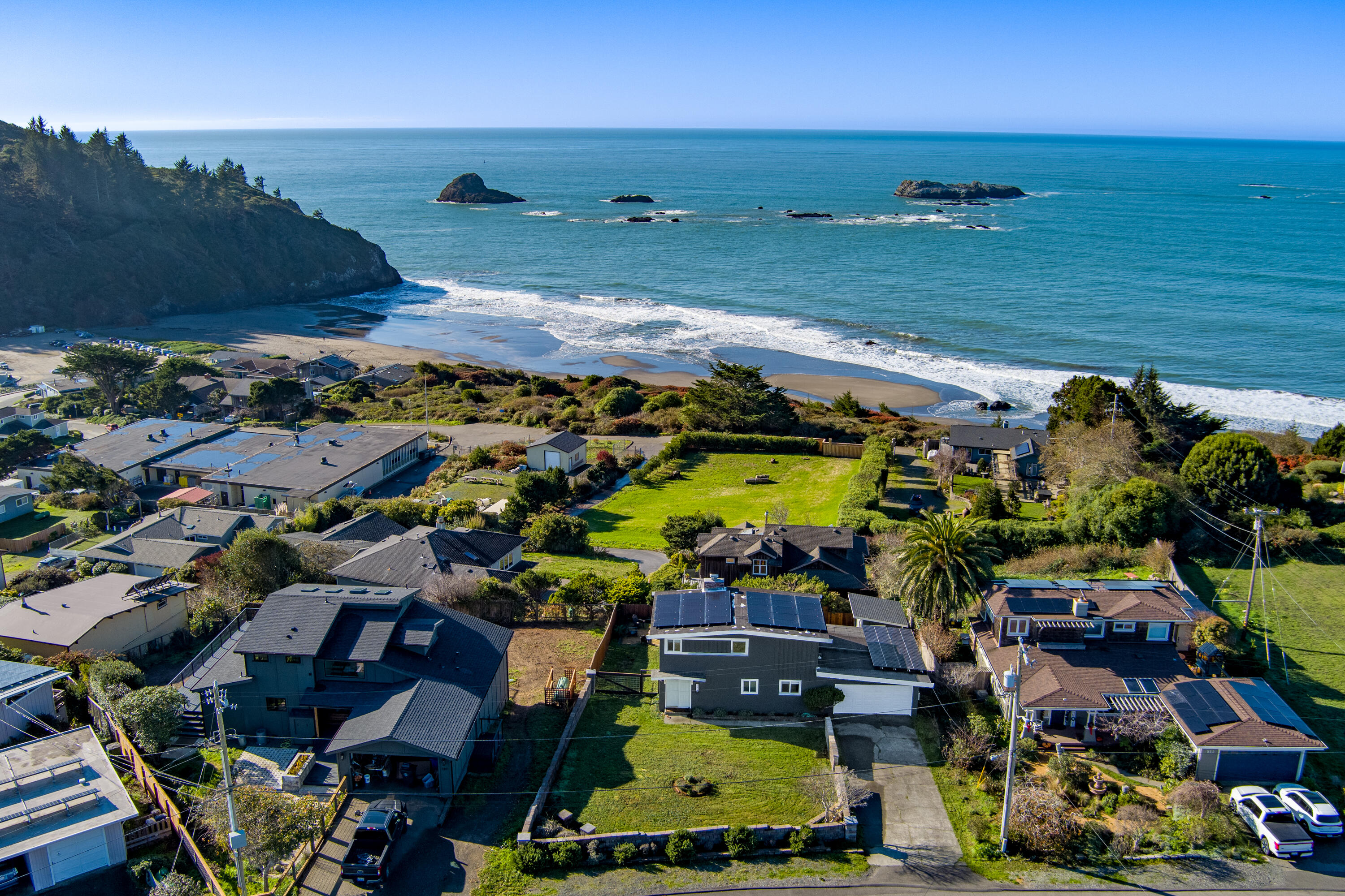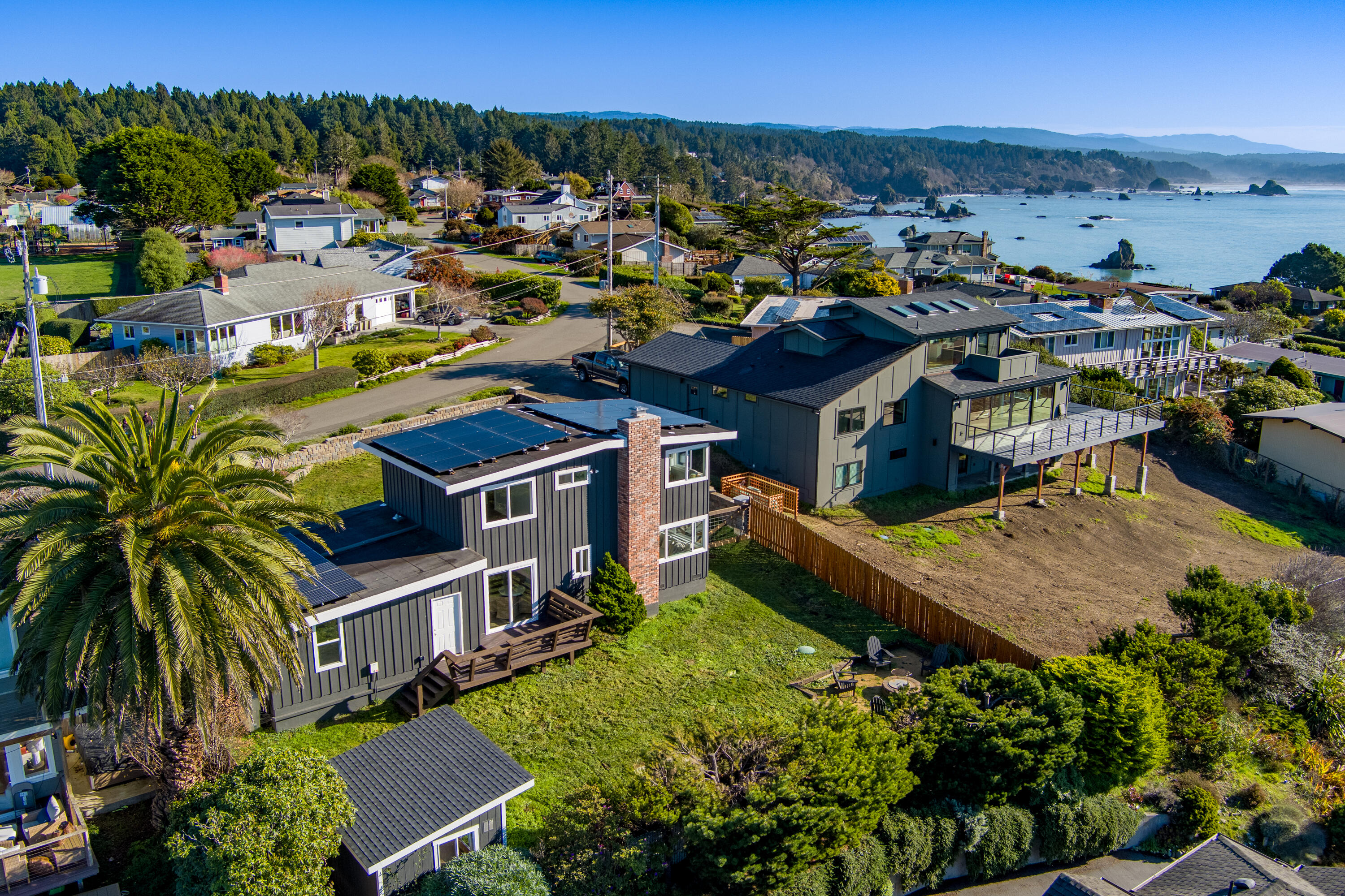Panoramic Ocean Views | Blue Zone Living | 100% Solar-Powered Tucked away in a coveted coastal setting, this beautifully updated residence offers ocean views from every window, capturing the natural beauty that define Trinidad, California—one of Northern California's most treasured seaside communities. This home Features 2 bedrooms and 1.5 baths with thoughtfully appointed modern finishes that creates a refined yet relaxed coastal retreat. Enjoy golden-hour sunsets here every day and experience the rare luxury of proximity to the ocean. Designed with sustainability and simplicity in mind, the home is 100% solar powered and energy efficient, featuring an EV charger and no reliance on PG&E, propane, or gasoline. Utility rebates for solar overproduction offer meaningful monthly savings often around $1,000 allowing you to redirect those funds toward unforgettable meals at local restaurants, wine tastings, and coastal experiences shared with your new Trinidad community. Additionally this home comes with a detached 120 - square-foot artist studio, a double car garage and easy "mow-and-go" landscaping for low maintenance living. A concrete slab pre-wired for a hot tub. Just steps from your front door, the scenic "State Beach Trail" leads directly to Trinidad State Beach, making the coastline feel like an extension of your own backyard. More than a home this is a way of life- where Blue Zone Living greets you everyday. Easy to show and a pleasure to see.