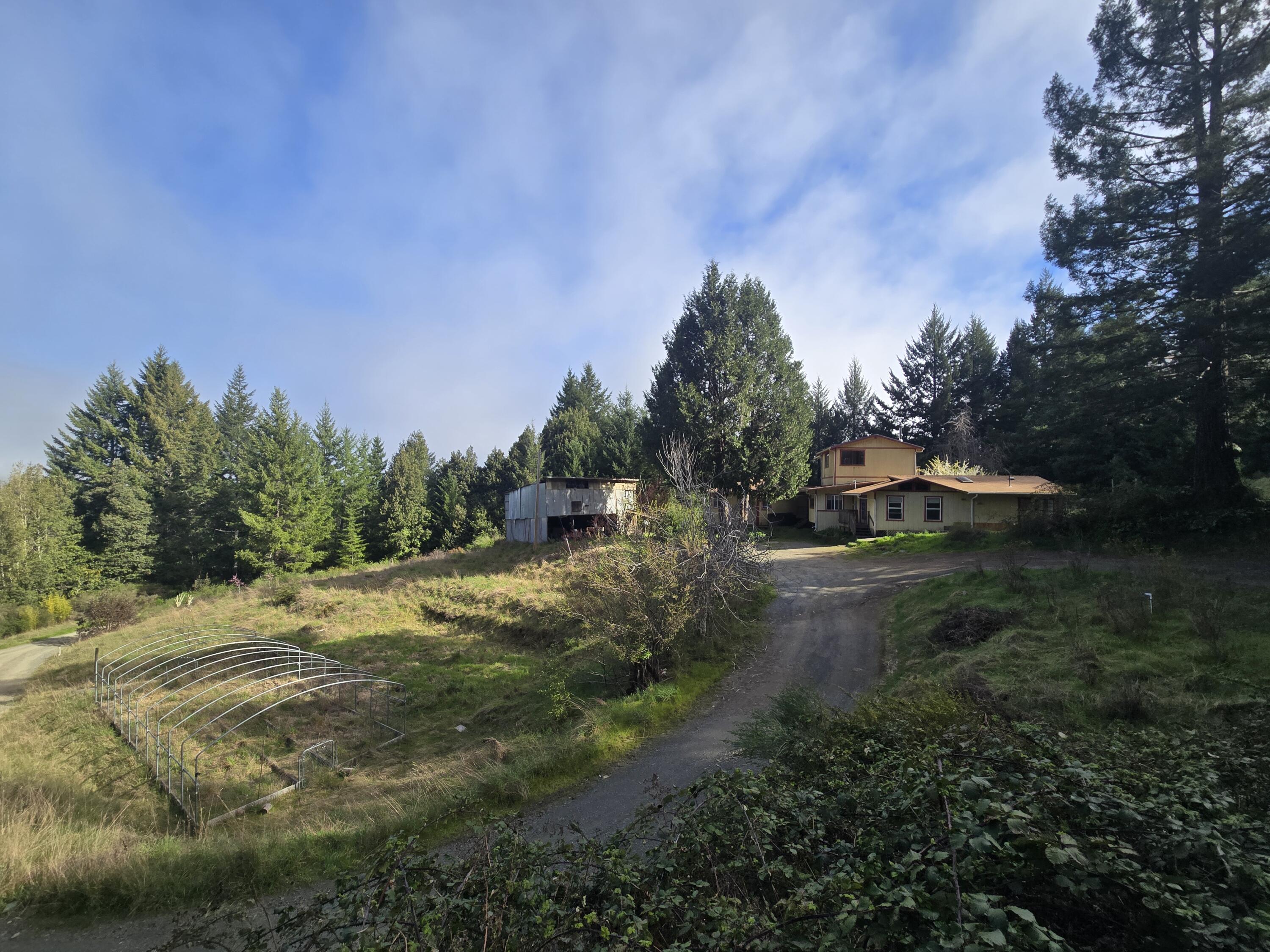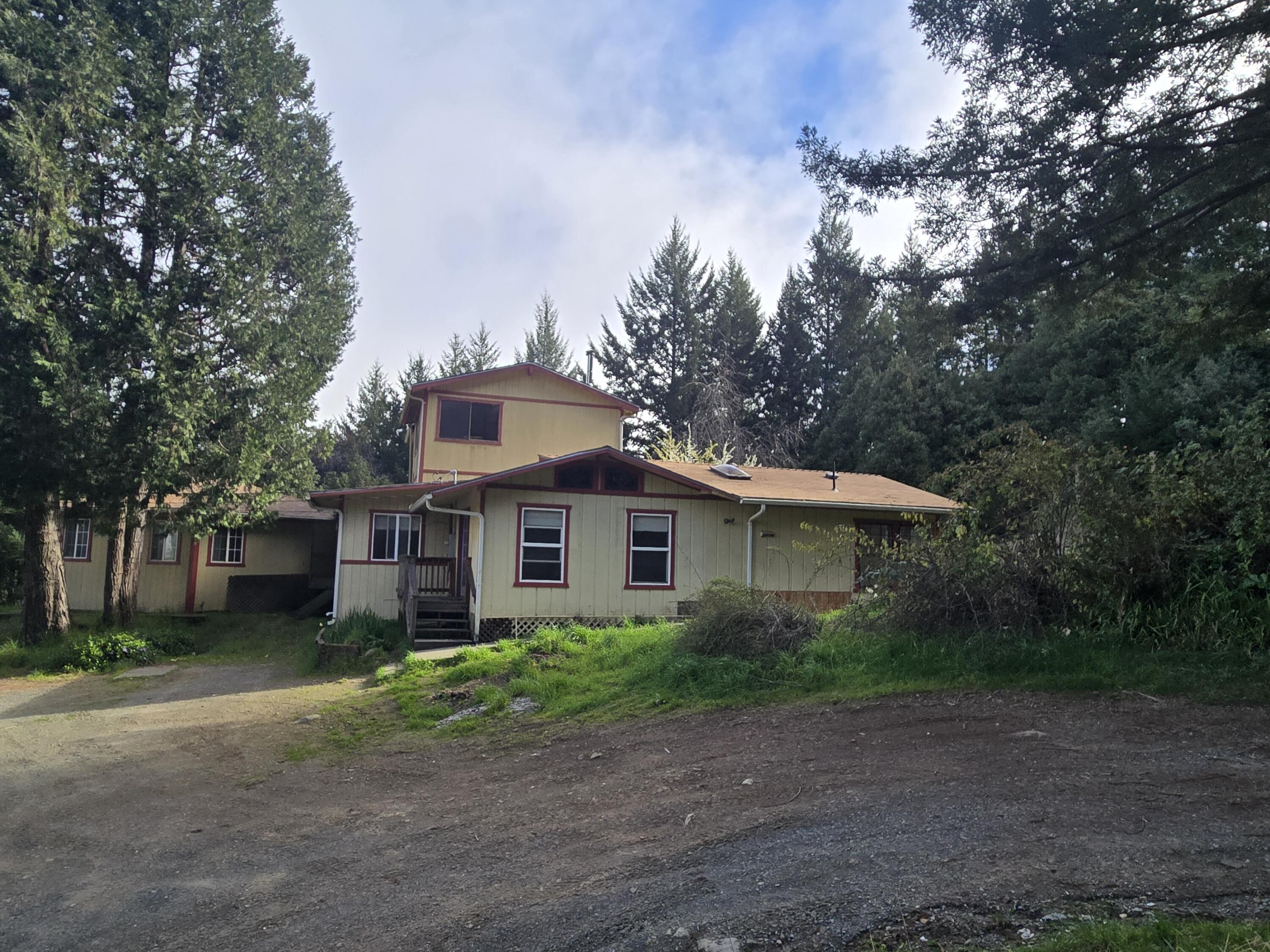 Work, live, and thrive in scenic Salmon Creek on 65 private acres just 15 minutes from town. This inviting 4-bedroom, 2.5-bath home offers a spacious living room, formal dining area, and bright breakfast nook. The kitchen features beautiful cabinetry, stainless refrigerator, 5-burner propane range, and a large pantry with washer, dryer, extra refrigerator, and chest freezer. Enjoy forced-air heat, two wood stoves, and a newer water heater. On-grid with two PG&E meters, plus abundant water from two registered springs and a small pond. Gardens, fruit trees, roses, 1000sf metal shop with utilities complete this peaceful retreat. Home and Shop where built with permits.