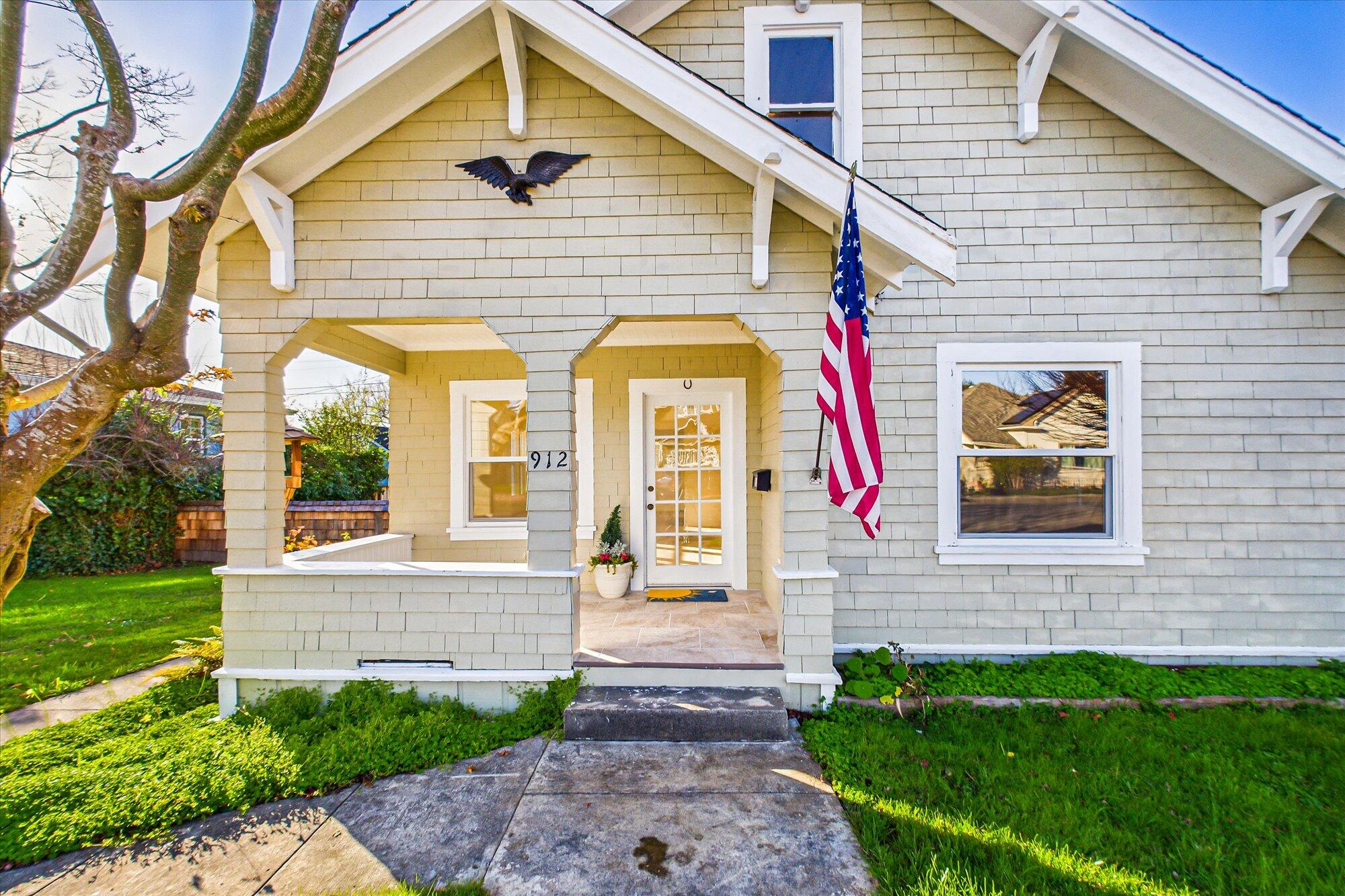 This sweet and charming craftsman style home has 2 bedrooms downstairs and 2 full bathrooms downstairs too all fully remodeled, and a large bonus room upstairs with coved pine ceilings that could be a 3rd bedroom, office or anything you would like! A downstairs laundry room with new washer and dryer included! Fully refreshed kitchen with new appliances, sun pours in through new windows and cute sitting benches in the living room make the space cozy! A large yard, and barn style garage off the alley make this home turn key !
