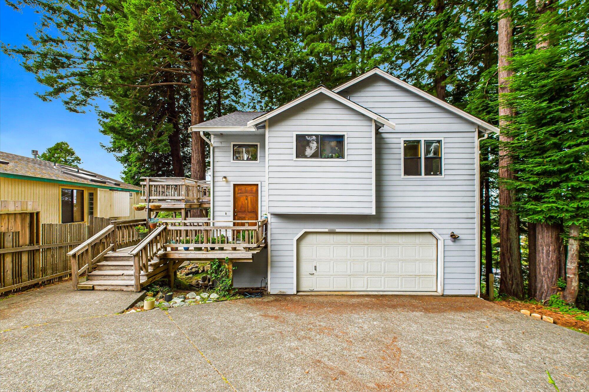 Located in one of Arcata's most desirable neighborhoods and just blocks from Cal Poly Humboldt, this versatile home is a rare find. This versatile home can be configured as a 3bed/2bath home or as an income producing multifamily home. Simply by unlocking or unlocking a door. With the upstairs being 2-bedroom, 1-bath with an open concept and panoramic views of the redwoods and peaks of the bay and ocean. Enjoy cozy winter nights by the fireplace and summer sunsets on the south facing deck. The downstairs is a spacious 1-bedroom, 1-bath with a full kitchen and private living space. Brand new roof, decking and railing! PLEASE do not disturb the tenants. Park on the street.