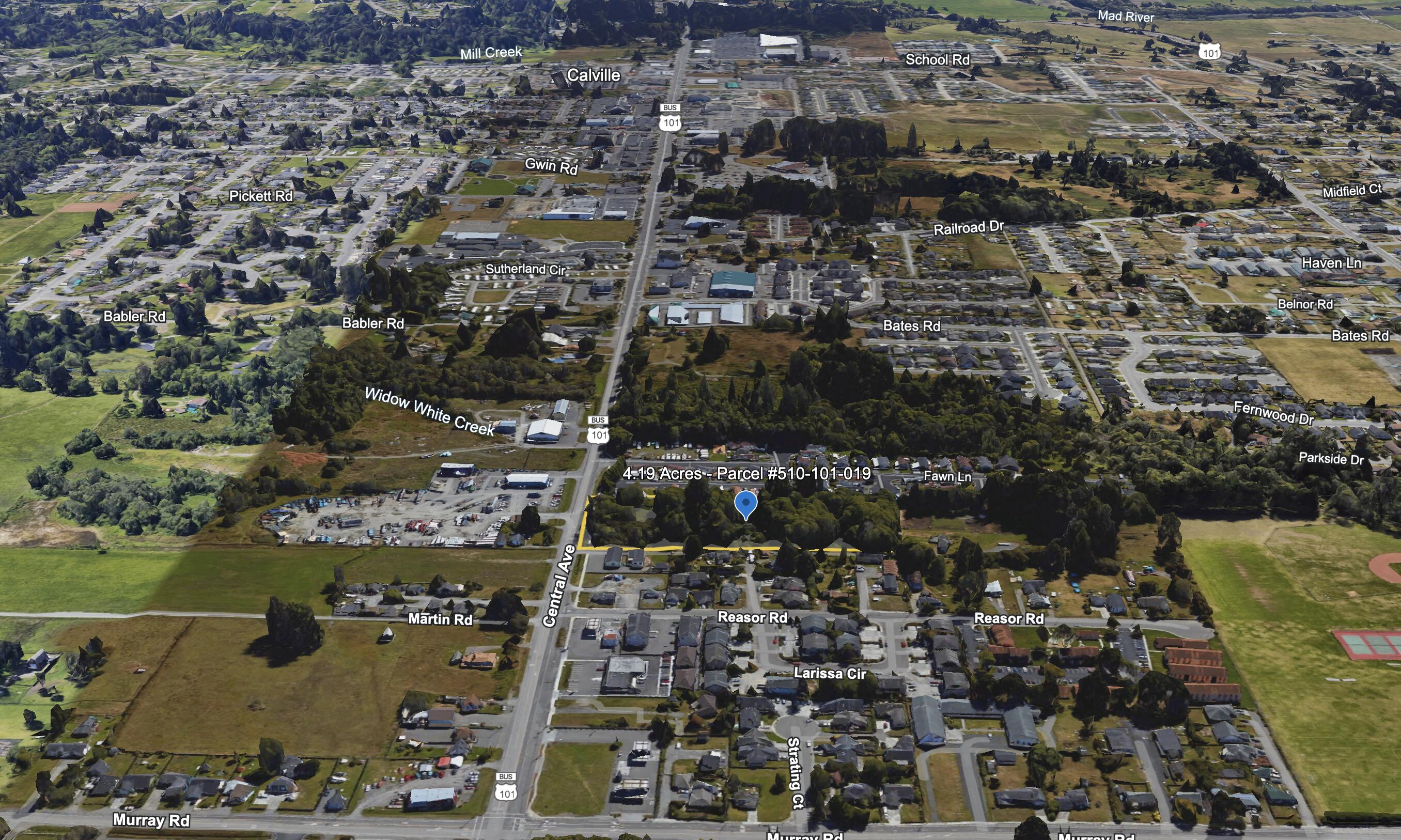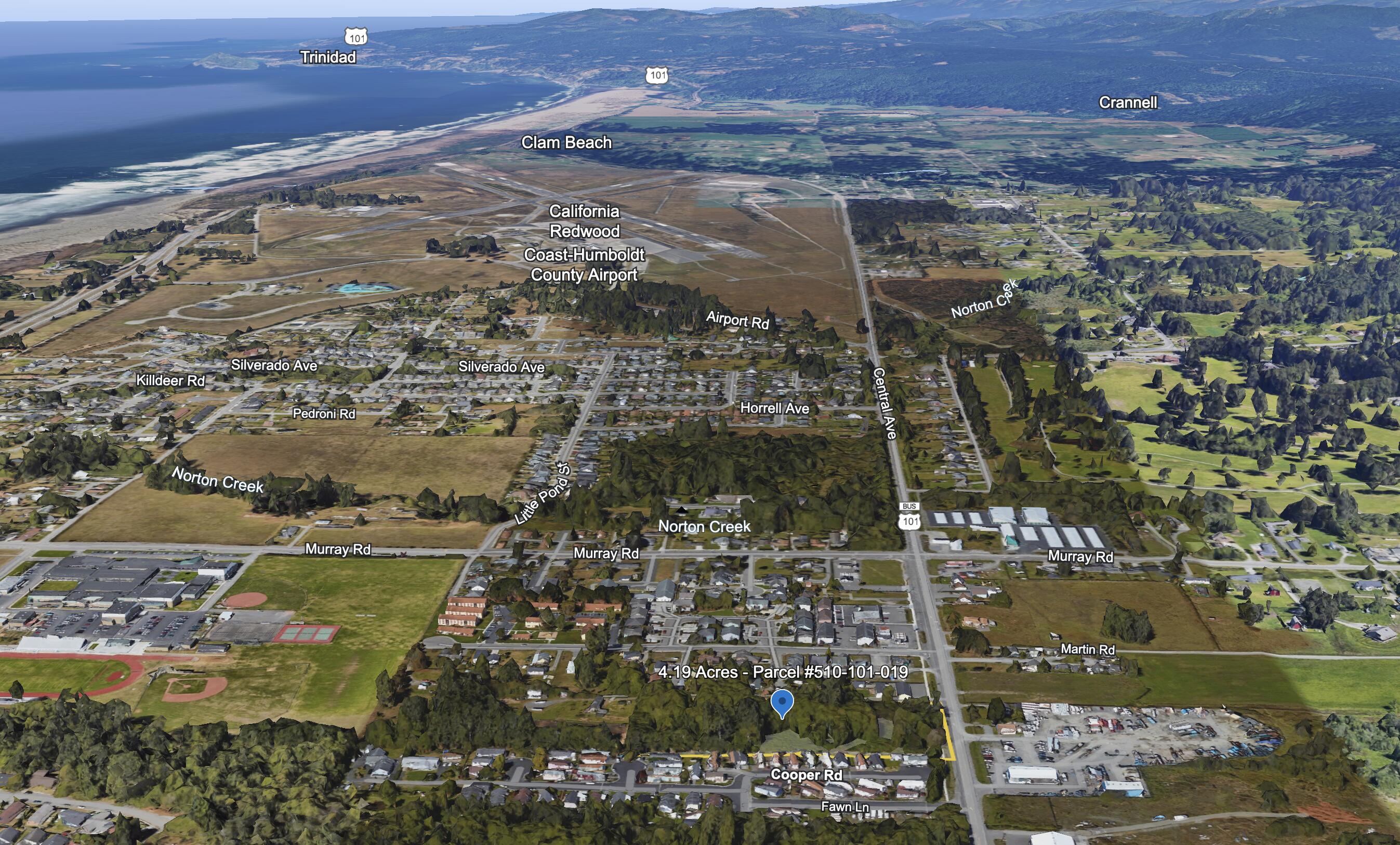 This 4 acre lot has an excellent location in McKinleyville close to shopping, schools, and the airport, and just a short drive to the ocean and beaches. Half of the lot is zoned residential and half that fronts Central Ave is zoned commercial.